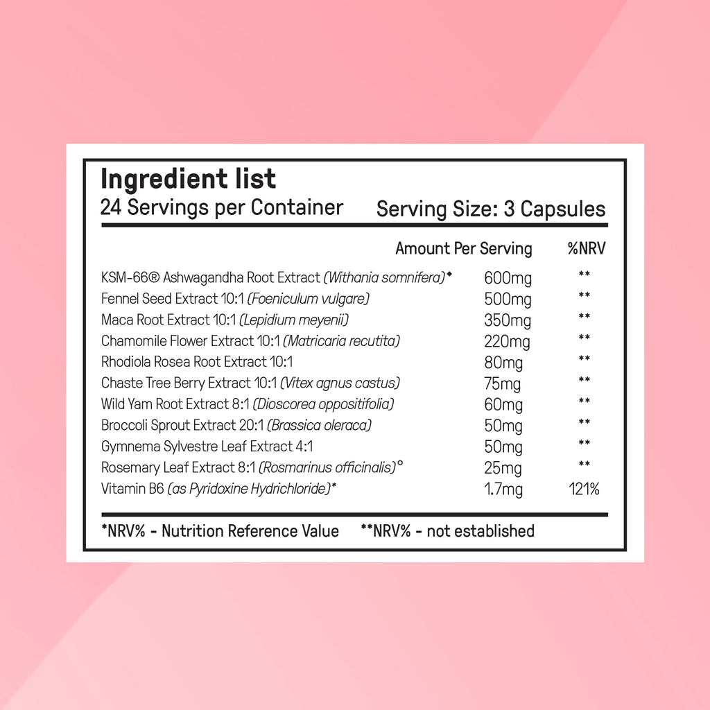Contains a blend of plant extracts shown to relieve symptoms of Menopause, decrease symptoms of premenstrual tension, and support a healthy menstrual cycle.